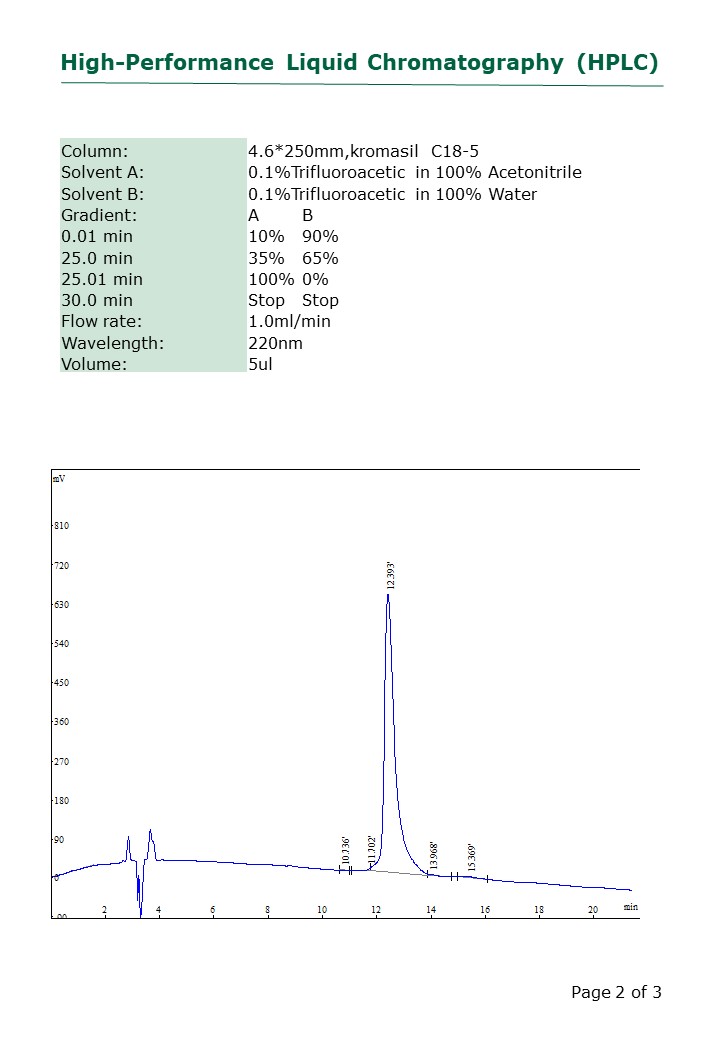 Storage: store lyophilized powder at -20°C, protect from light and moisture. Reconstituted solution should be kept at 2–8°C and used within a short period.