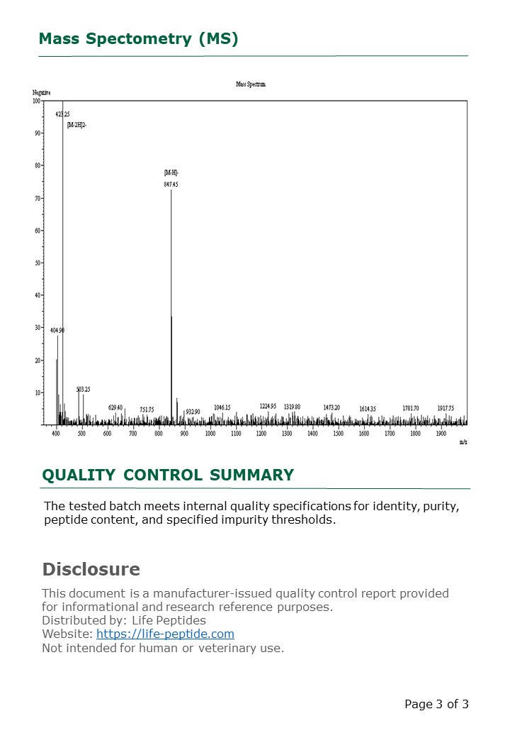 This product is sold for research purposes only. It is not intended to diagnose, treat, cure, or prevent any disease. Buyer assumes full responsibility for proper handling and use.